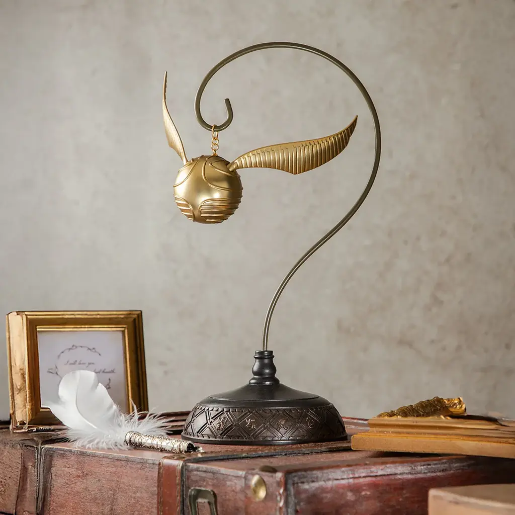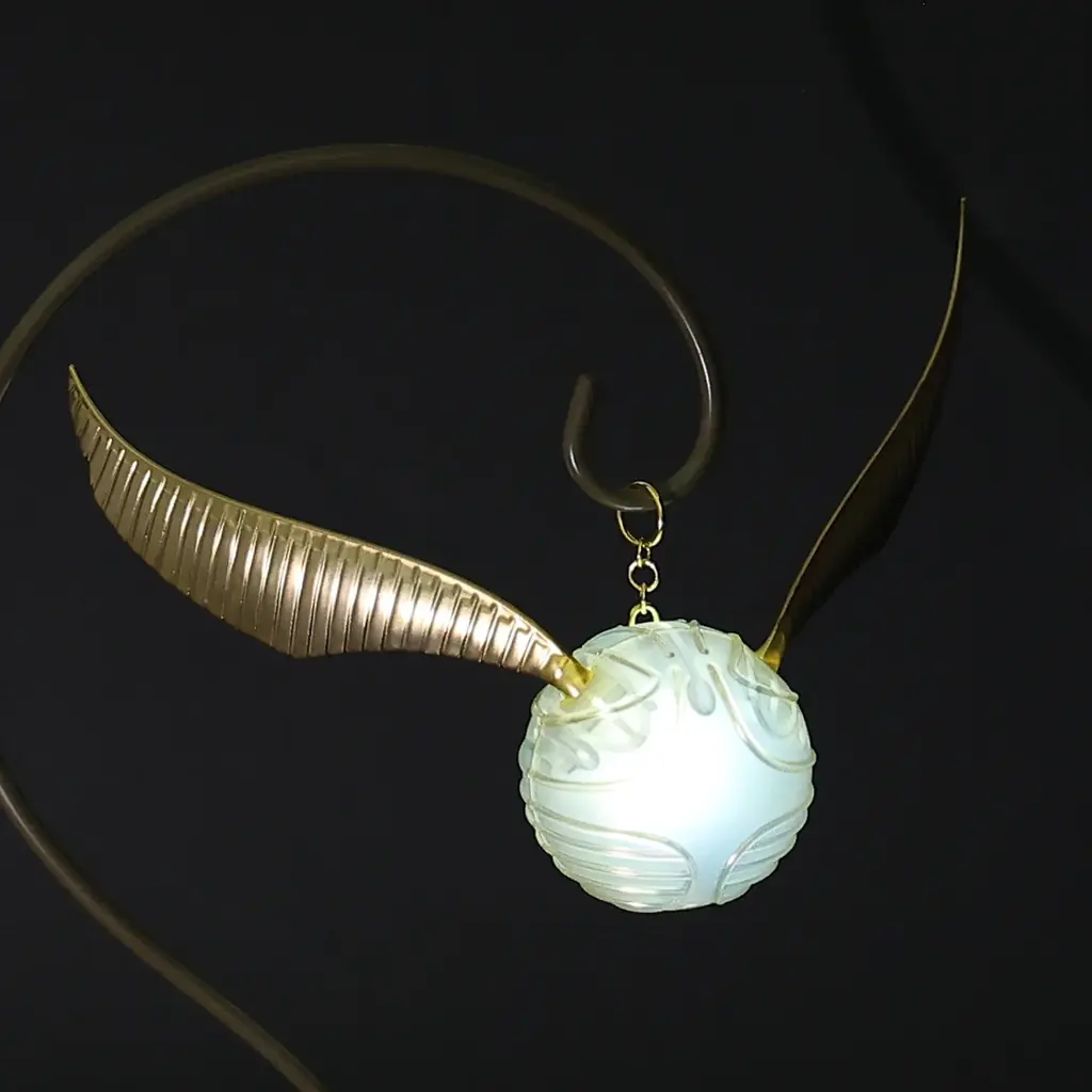 本アイテムは、魔法界の人気スポーツ「クィディッチ」においてシーカーが狙う象徴的存在である「金のスニッチ」をライトとして再現したもので、インテリアと実用性を兼ね備えています。落ち着いたゴールドの彩色と可動式の羽を採用し、作中のスニッチがピッチを飛び回る様子を想起させる演出が可能です。