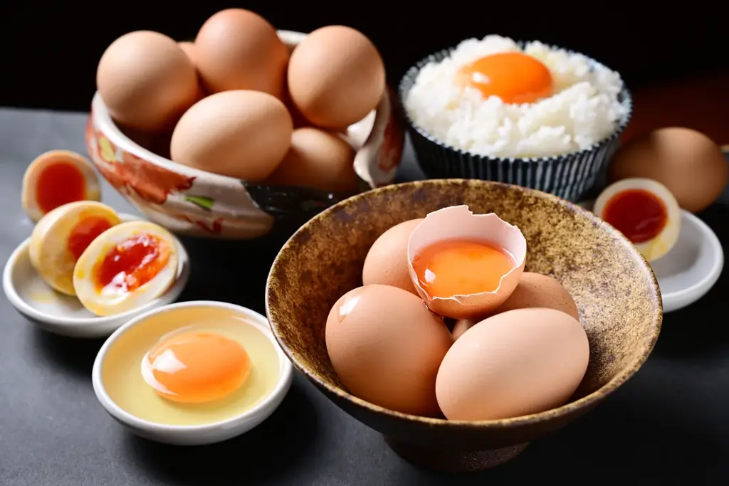 満月たまごの生卵 ¥120 — 餌にこだわる鶏が産むオレンジ色の卵黄が特徴の卵を使用。