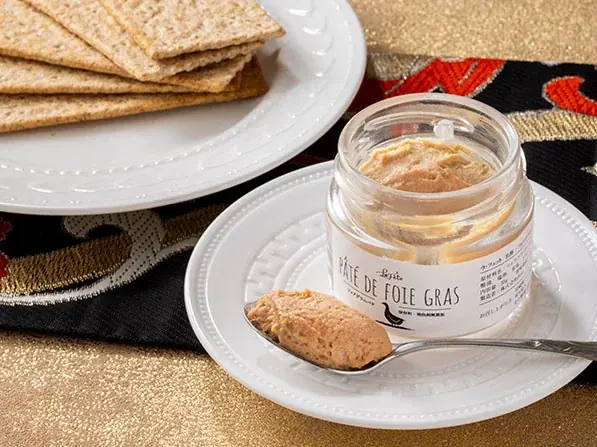 二段重のみの目玉として、フランス産キャビア、フォアグラのパテ、仔羊のスモーク、トリュフ入りチキンロースト、彩り野菜のゼリー寄せなどが挙げられます。キャビアはフランス産を使用し、フォアグラのパテはクラッカーや薄切りバゲットと合わせる提案がされています。