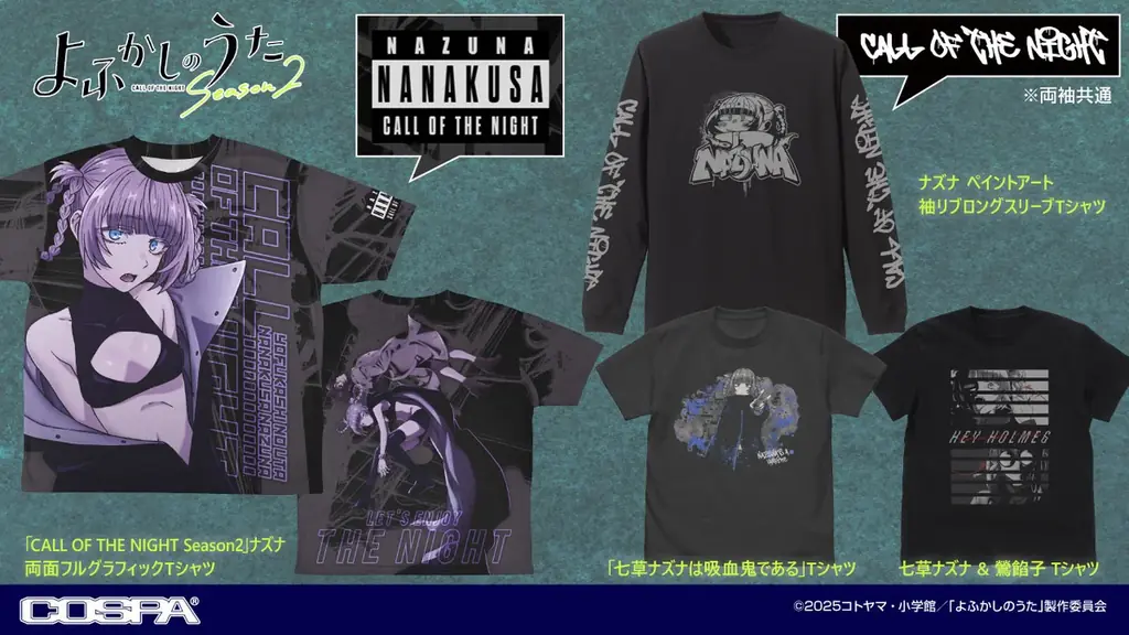 | 「CALL OF THE NIGHT Season2」ナズナ 両面フルグラフィックTシャツ | 2026年2月中旬予定 | 6,930円 | 同上 | ドライな質感、全面プリント |