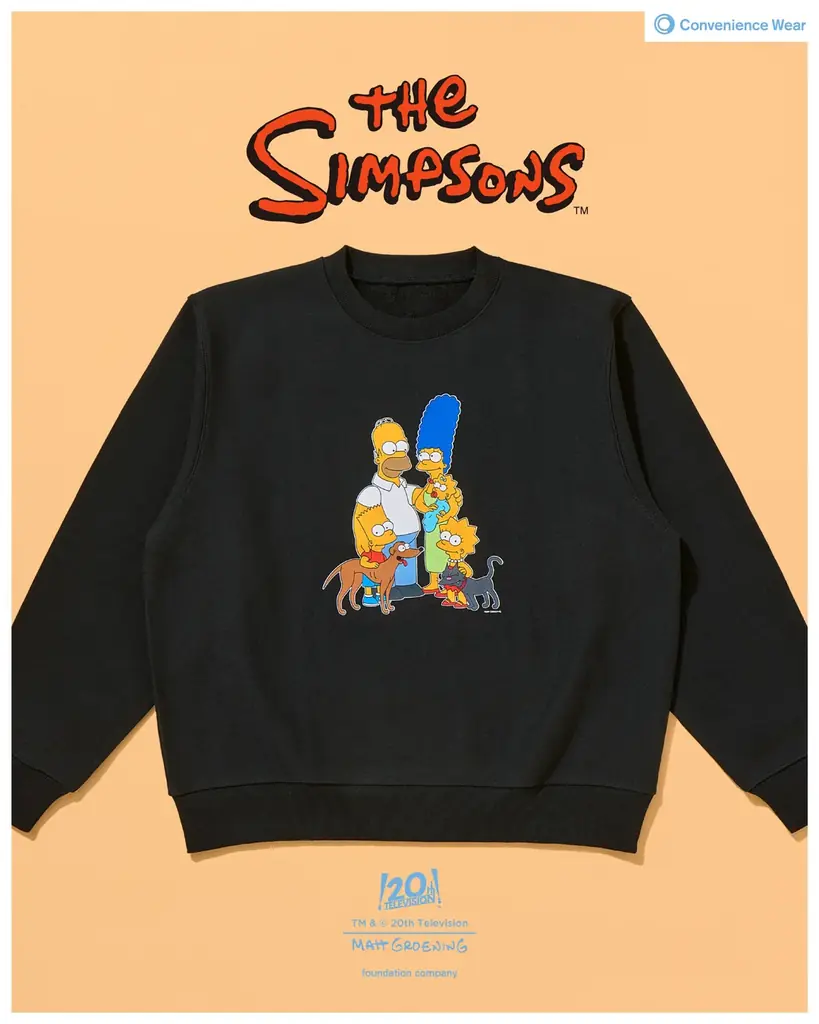 内容:シンプソン家一同をプリントしたスウェットトレーナー。毛羽立ちが少なく肌触りの良いヘビーウェイトのUSAコットン素材を使用し、1枚でコーディネートの主役になる設計です。