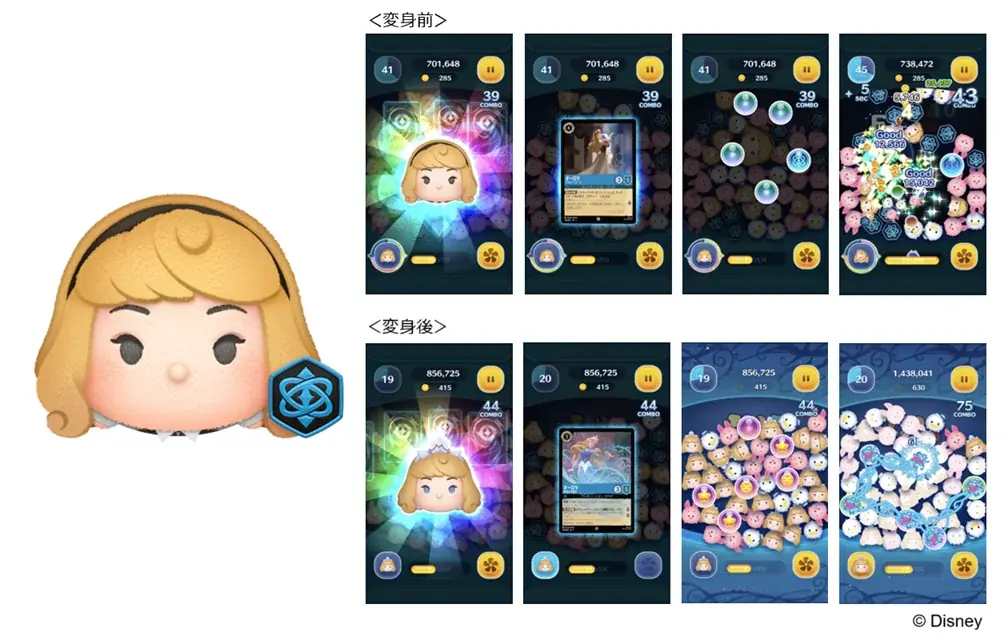 2025年11月1日(土)0:00より、スマートフォン向けカジュアルパズルゲーム『LINE:ディズニー ツムツム』に、ディズニー公式TCG「ディズニー・ロルカナ・TCG」をモチーフにした新ツム3種類が期間限定で登場します。今回追加される新ツムは、パズルプレイ中に変身する2種類と、変身ギミックを持たない1種類をあわせた計3種類です。登場期間は2025年11月1日(土)0:00~11月30日(日)23:59です。