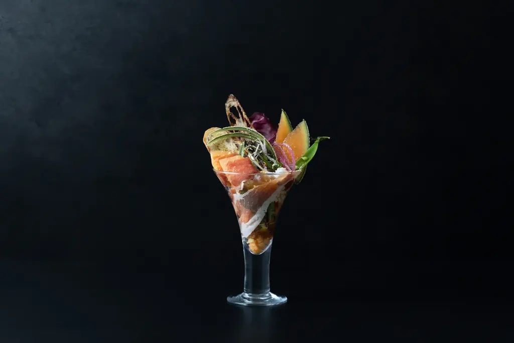 メロンと生ハムの冷製トロフィエ・デリパフェ