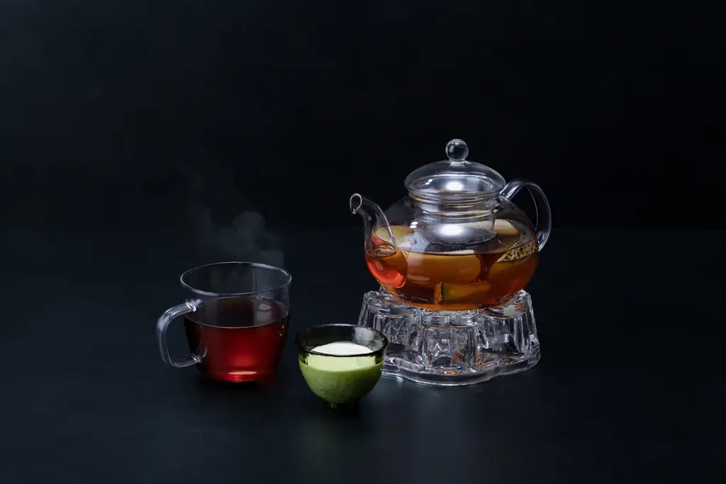 セットにあわせて提供される暖かいドリンクとして「メロンのフルーツティーポッド」(850円/税込)があります。このドリンクは生メロンを贅沢に使用した温かいメロンティーで、りんごと桃も合わせてフレーバーを引き立てます。途中で特製のメロンチーズクリームを加えることでクリーミーさが増し、飲み終えた後の果実も食べることができます。
