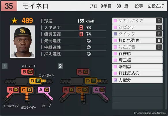さらに北海道日本ハムファイターズのフランミル・レイエス選手には、新たに特殊能力として「広角打法」や「マルチ弾」が付与され、3塁方向や外野への打ち分け、複数塁打に結びつく打撃特性が強化されています。