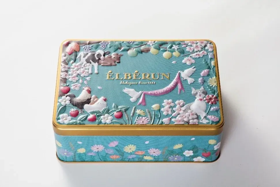 今回の出品で特に注目されるのは、「ハート・オブ・エルベラン缶(大丸限定グリーン)」の復刻販売です。これは昨年の60周年を記念してデザインされた缶で、定番のトラッド缶・さくら缶に加え、イベントに合わせて大丸限定カラーのグリーン缶が数量限定で登場します。