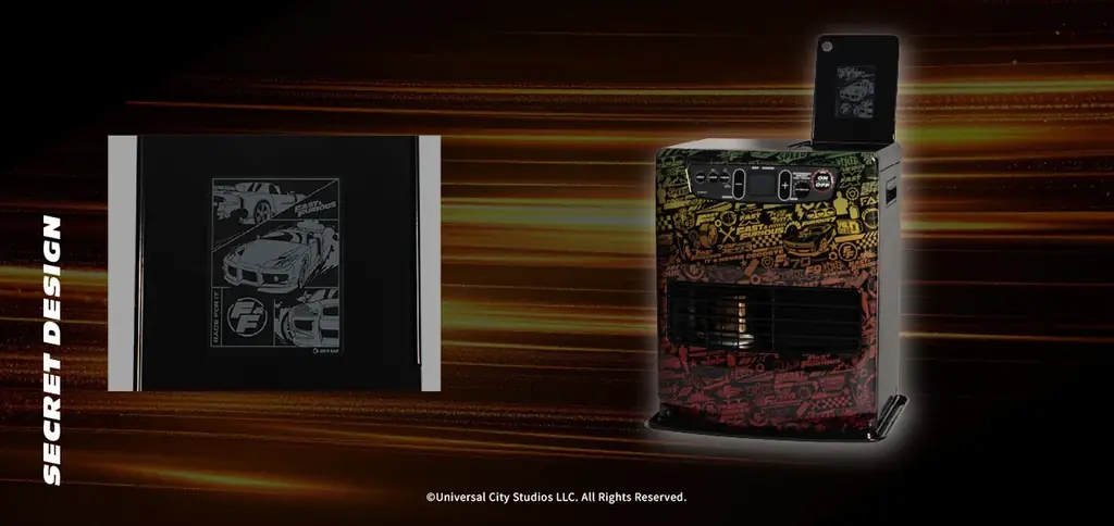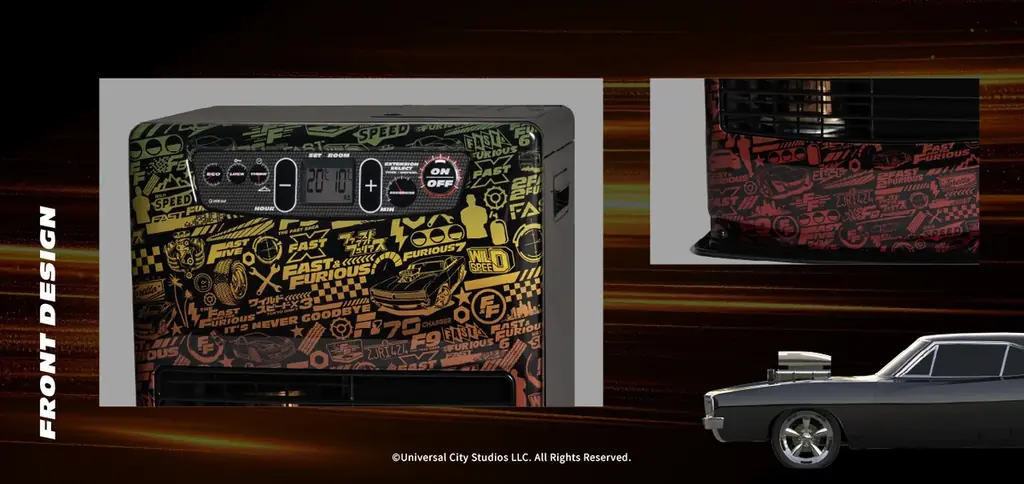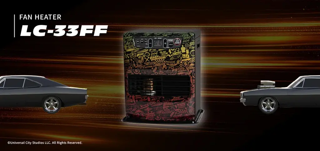 コラボモデルは石油ファンヒーター「LC-33FF」として登場し、フロントパネルには映画タイトルと劇中に登場するイラストをプリントしています。映画さながらの迫力とスピード感を表現するために、ド派手なグラデーションカラーを採用しました。