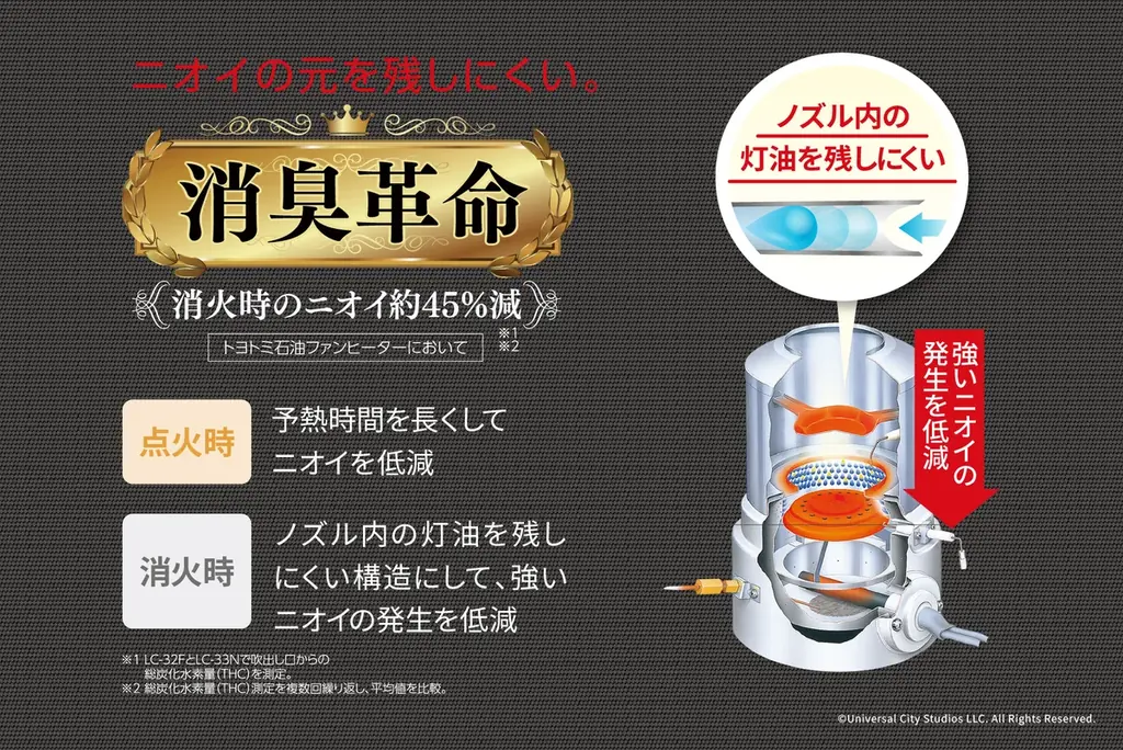 - 消臭システム:消火時にノズル内に灯油が残りにくい構造を採用し、強いニオイの発生を低減します。