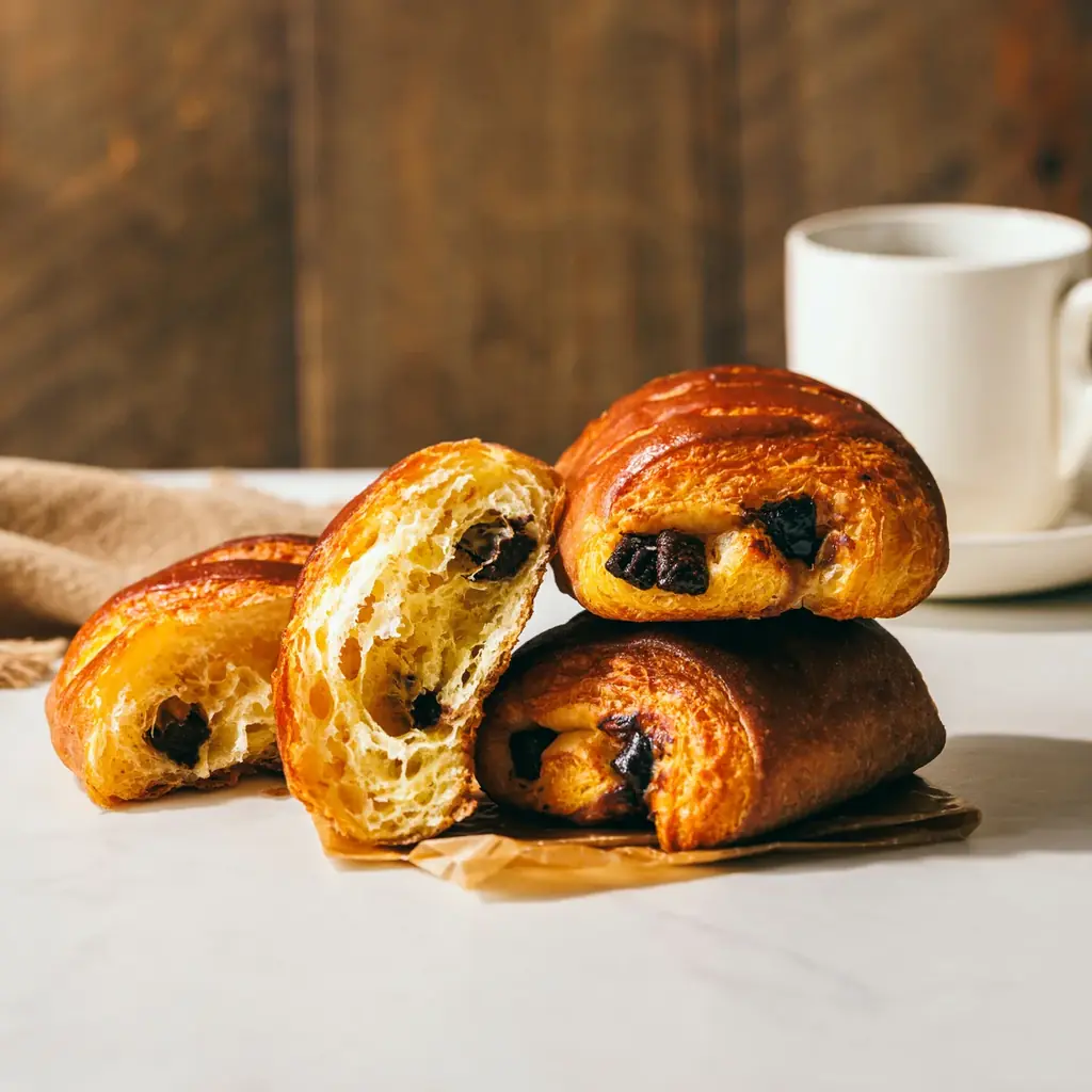 風味豊かなデニッシュ生地に棒チョコとチョコクリームを巻き込んだ、甘さとほろ苦さのバランスが特徴のチョコデニッシュです。デニッシュ生地の香りとチョコのアクセントが最後まで飽きさせない設計になっています。