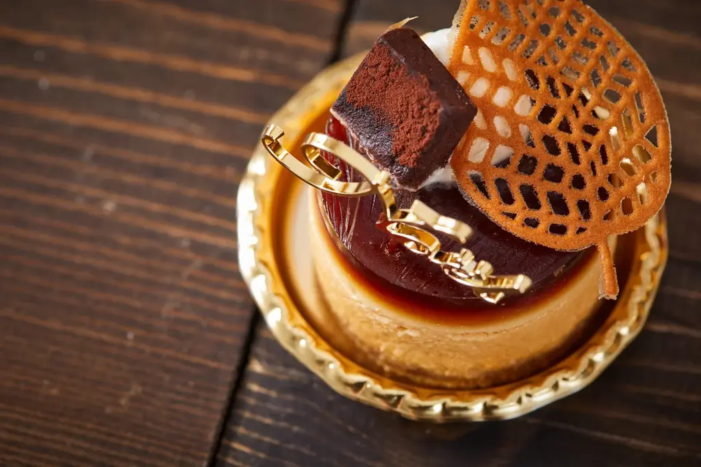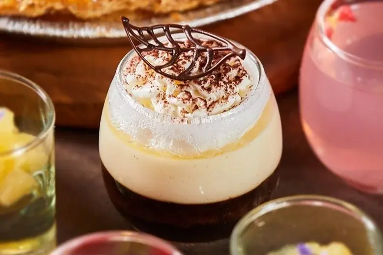 ライブキッチンではシェフがその場でティラミスを仕上げます。提供されるティラミスは、マスカルポーネを主体にしたクリームとコーヒーシロップを浸したスポンジ、仕上げにココアパウダーをふりかけることで、甘さとほろ苦さのバランスを追求した一品です。