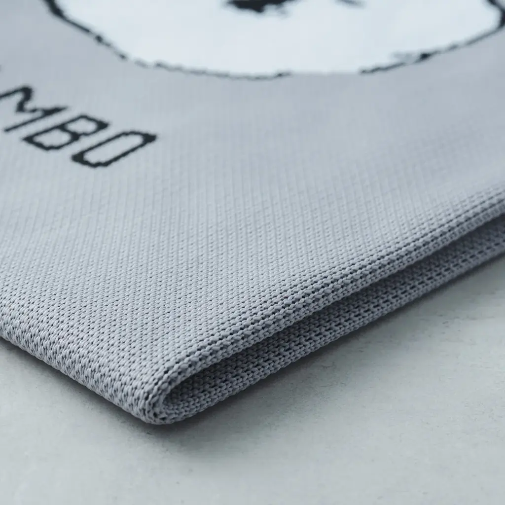 編み目が細かく密度の高いニットで製作されているため、見た目の落ち着きと手触りの良さを両立しています。片側に目をぱっちり開いたMAMBO、反対側に目を閉じて眠っているMAMBOという左右で異なる表情のデザインが施されており、持つ向きによって見え方が変わる点も魅力の一つです。