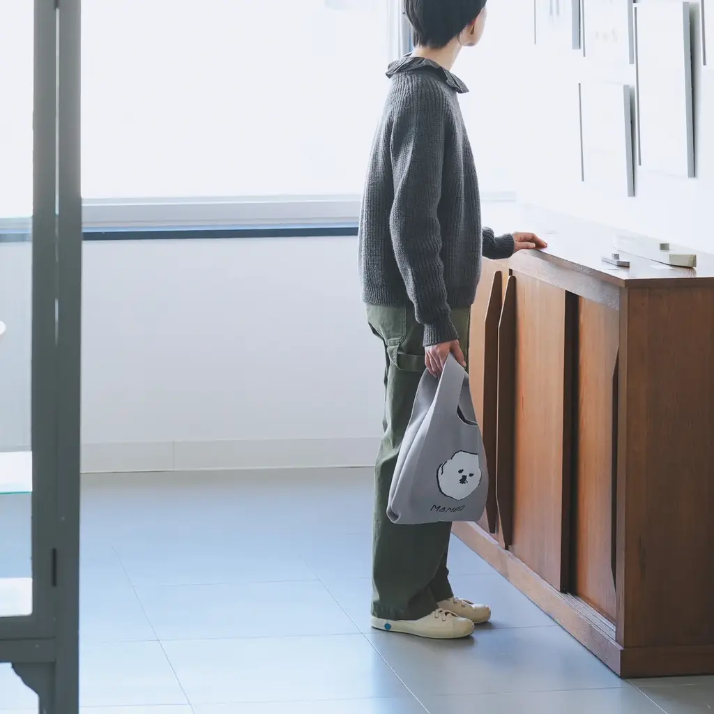 「MAMBO ニットマルシェバッグ / KAO」はコンパクトながらマチを備え、日常で必要な小物をしっかり収納できる設計です。ハンカチやポーチ、財布などを入れて近所への外出や買い物のサブバッグとして利用するのに適したサイズ感です。