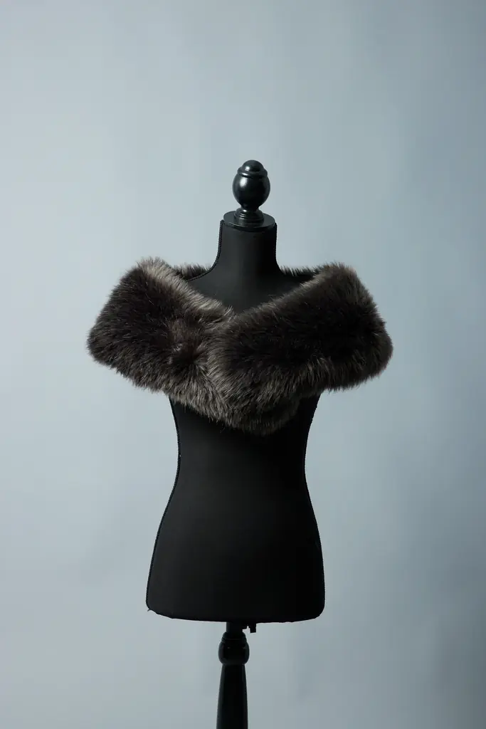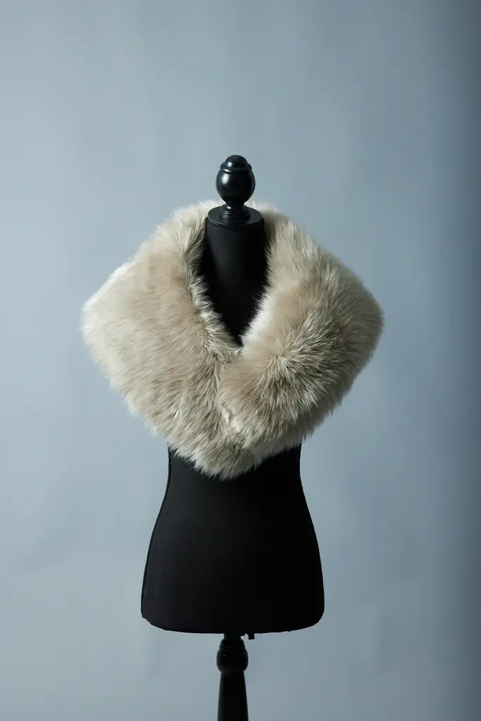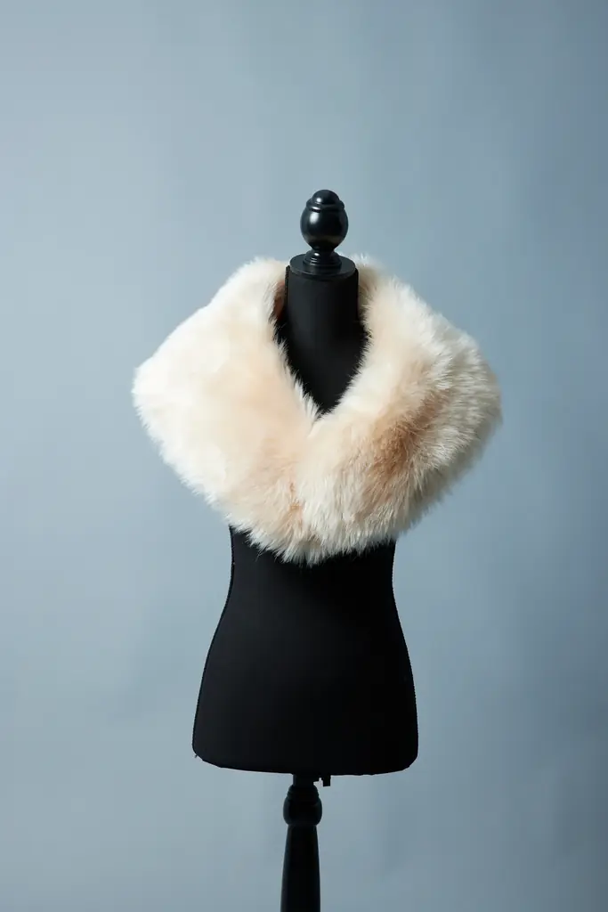 動物の毛皮を使わない日本製エコファーショール。和歌山・高野口のJAPAN ECOFUR®を採用し、振袖にも合う品格あるデザインで普段使いも可能。FUR FREE認証を取得しています。