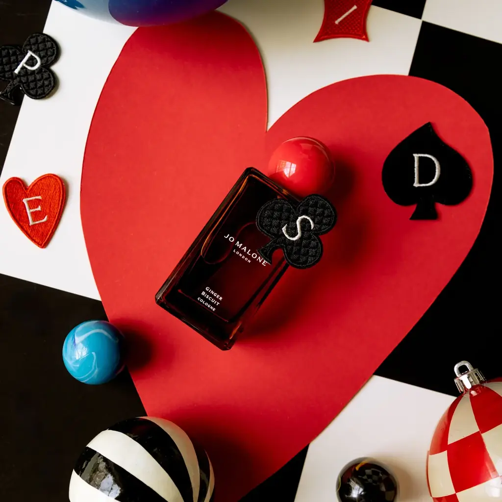 ポップアップイベント開催を記念し、イベント会場を含む全国のジョー マローン ロンドン店舗にてクリスマスコレクション製品をご購入の方全員に、トランプモチーフのオリジナルステッカーをプレゼント(写真はイメージ。アルファベットの刺繍は入りません)。