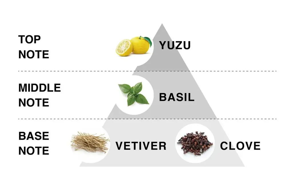 トップにユズとバジルの透明感があり、ラストノートにベチバーとクローブが余韻を与える構成で、シーンを選ばない落ち着いた香り設計です。