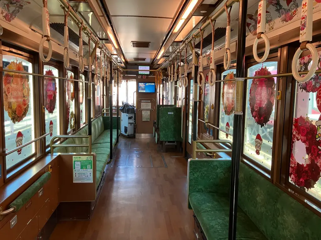 - つり革装飾:つり革周辺にも季節モチーフをあしらい、乗車中の視界に入る細部を丁寧に装飾。