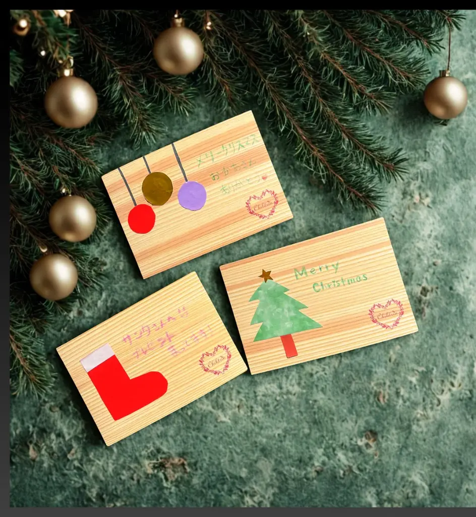 チルドリンによる「木のクリスマスカード」制作は、徳島県産の樹の紙(ハガキ)を用いる。折り紙や色鉛筆で自由にデザインし、制作したカードは持ち帰れるため家庭で飾ることもできる。
