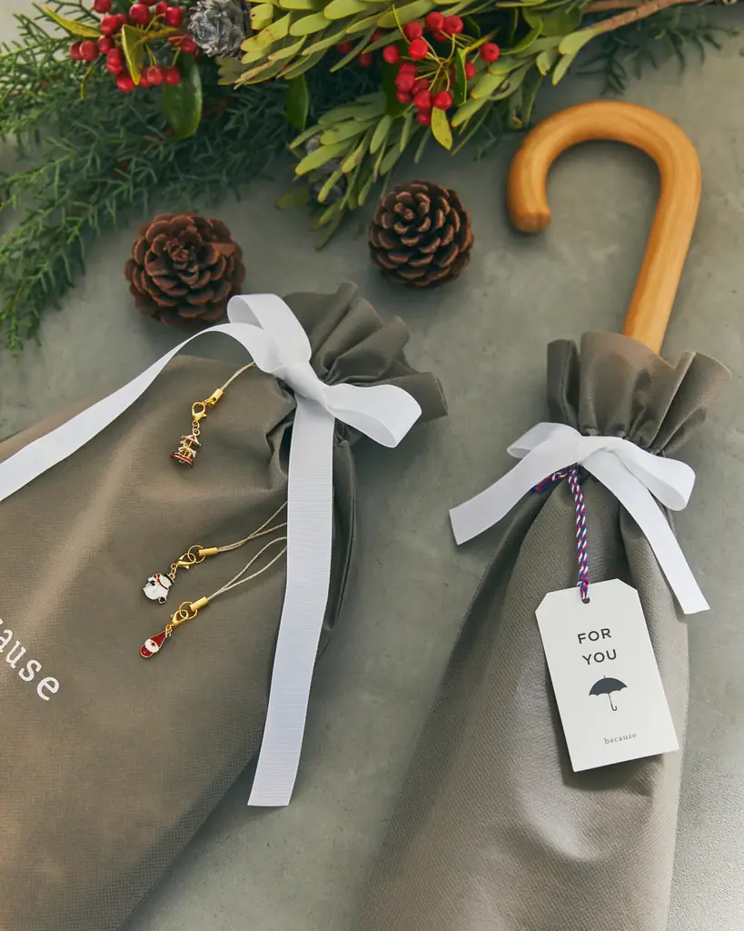対象となるのは楽天オンラインストアにて販売される傘またはレインコートで、一定のセール品やクーポン対象商品は除外されます。プレゼントとして用意されるのは特製のギフトラッピング(グレージュカラー)と、クリスマスモチーフのクリスマスチャームの2点です。先着での提供や適用条件が明確に定められており、贈り物としての体裁を重視した仕様になっています。