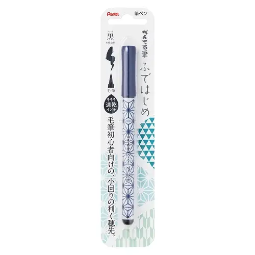 - ぺんてる ぺんてる筆 ふではじめ XGFD40CA3-A 麻の葉柄/黒 — 440円(毛筆初心者向け、速乾インキ)