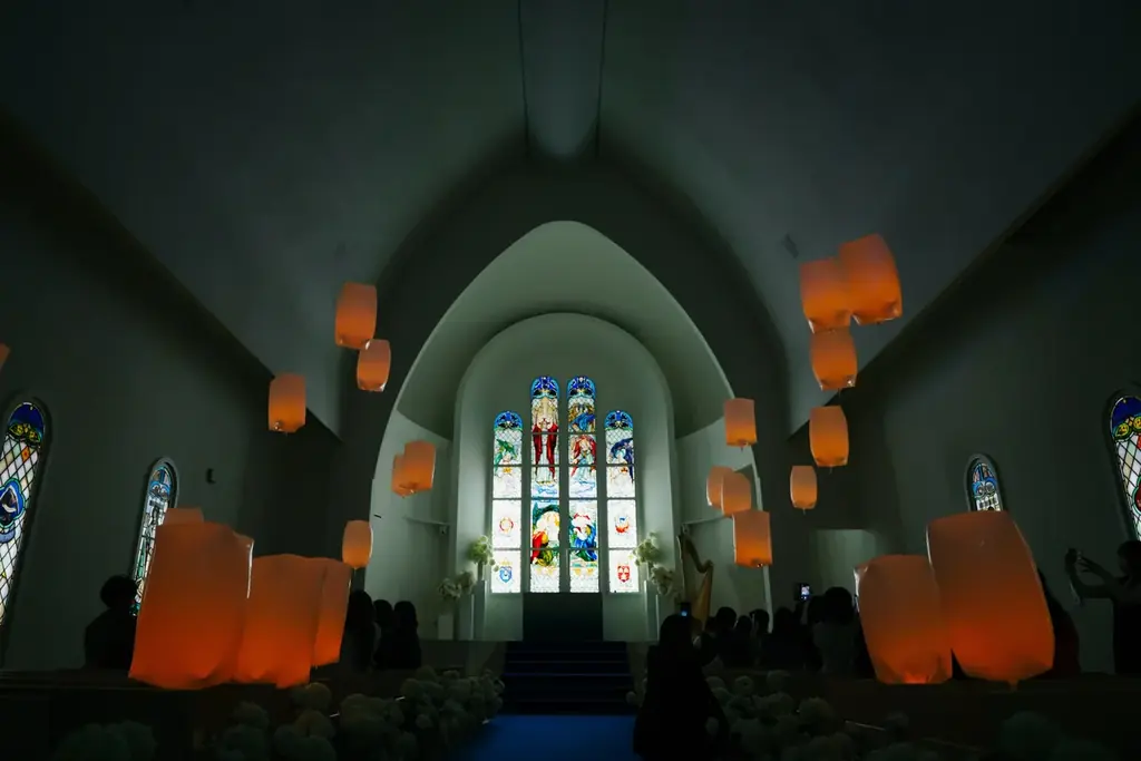 バルーンランタンリリース(チャペル内と夜空での演出)