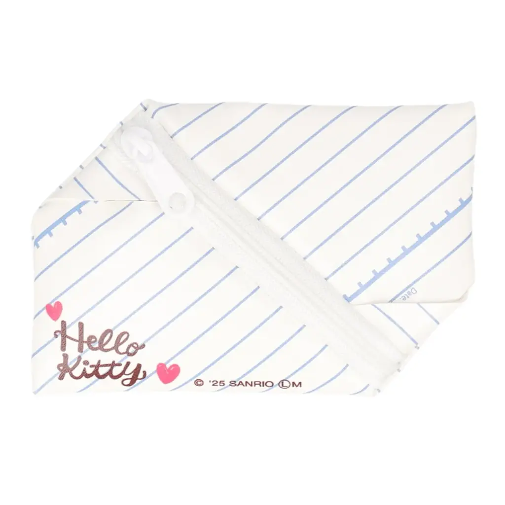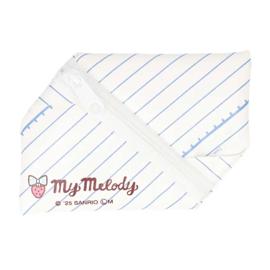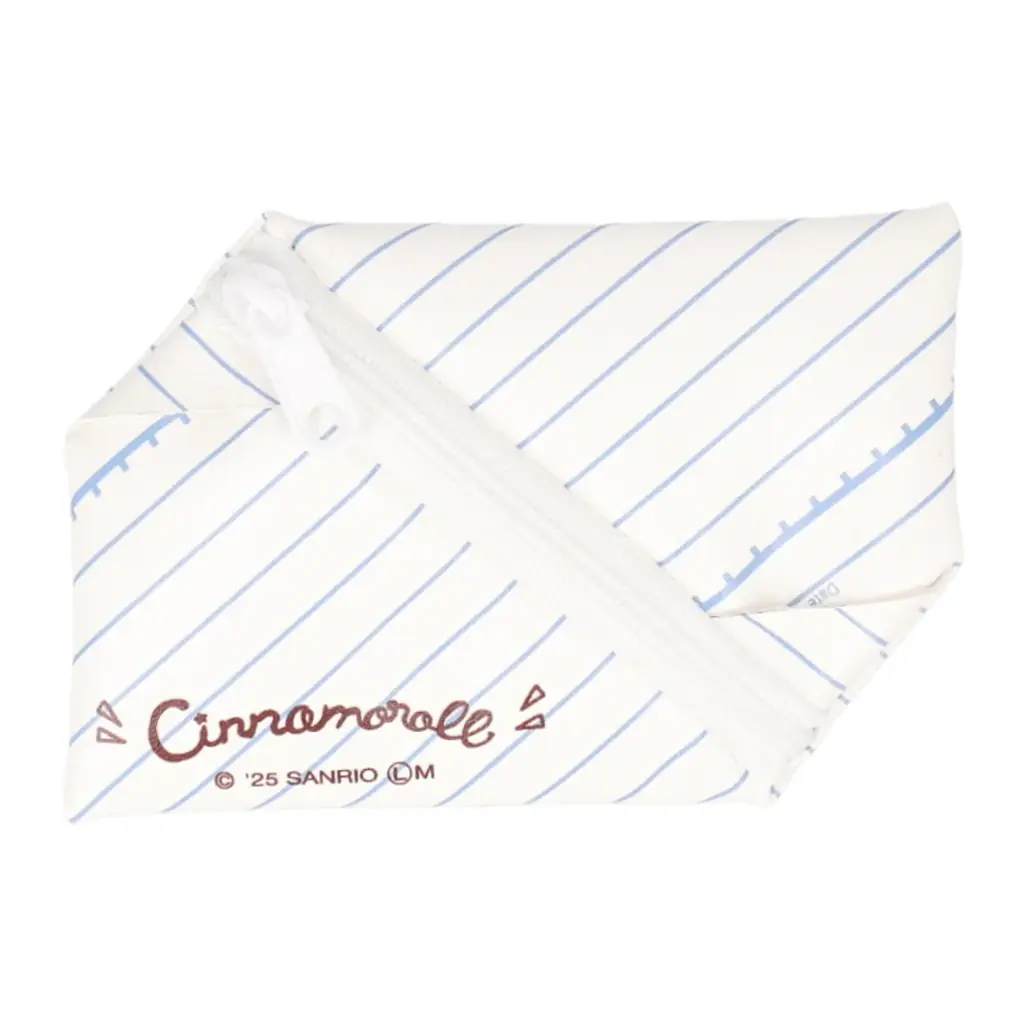 「サンリオキャラクターズ あのころのおてがみポーチ」は、ノートを切り取って折りたたみ手紙を交換していた頃を想起させる外観を持つポーチである。表面は手描き風のキャラクターデザインに、さくらんぼや星などのアイコンを配しており、ノートの罫線や宛先欄をあえてデザインに取り入れている点が特徴である。