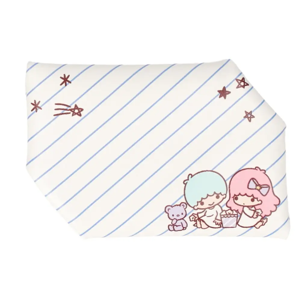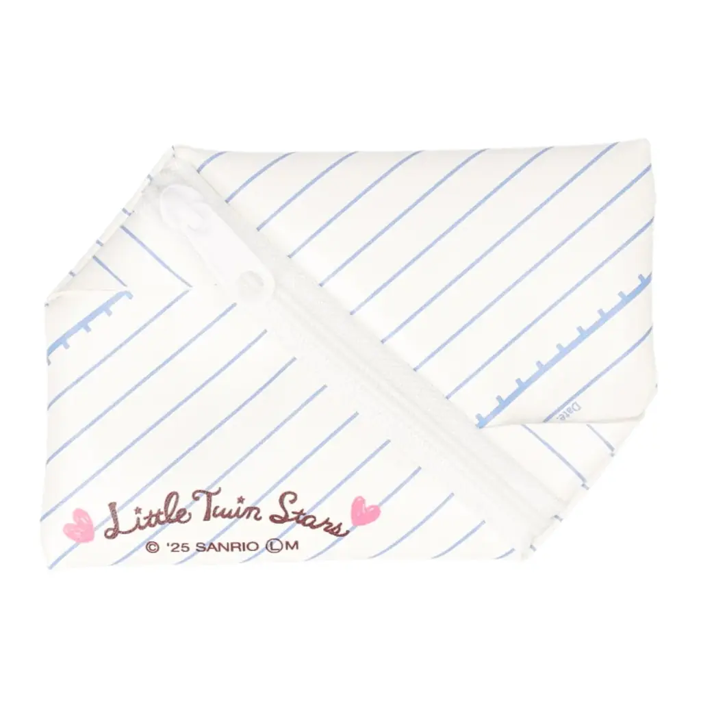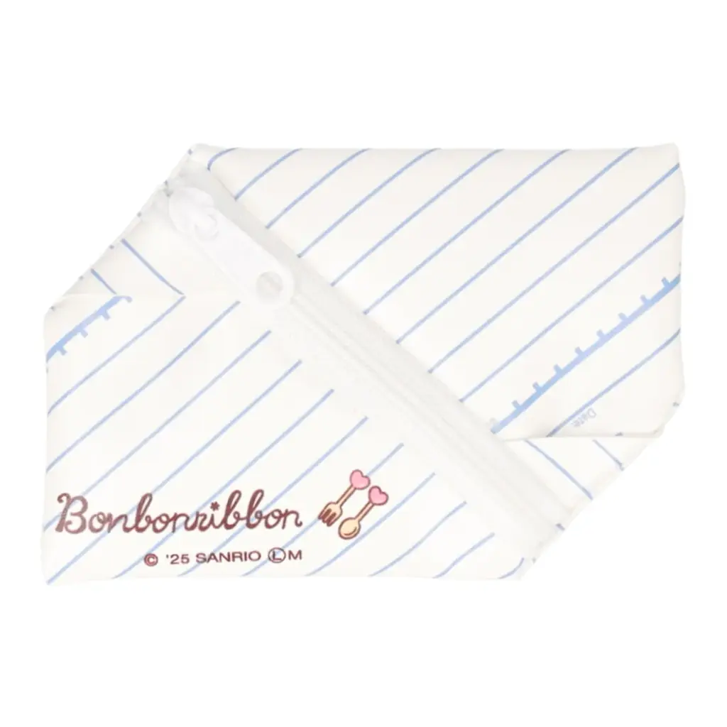 「サンリオキャラクターズ あのころのおてがみポーチ」は、ノートを切り取って折りたたみ手紙を交換していた頃を想起させる外観を持つポーチである。表面は手描き風のキャラクターデザインに、さくらんぼや星などのアイコンを配しており、ノートの罫線や宛先欄をあえてデザインに取り入れている点が特徴である。