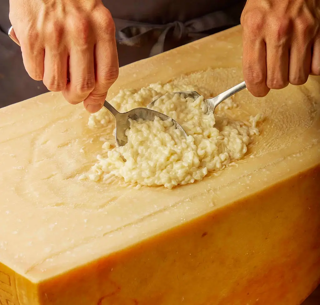 チーズ提供 DOP認定パルミジャーノ・レッジャーノ(24か月熟成)をワゴンサービスで提供