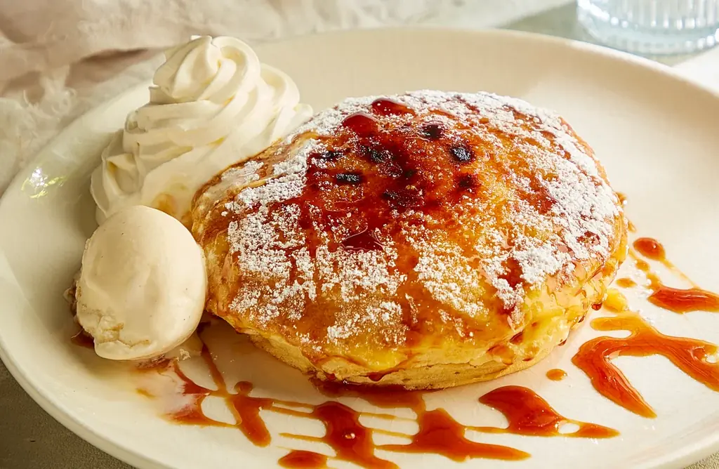 デザートは注文を受けてから焼き上げるパンケーキや、フレッシュフルーツを用いたパフェ、季節の素材を使ったタルト類を揃えたラインナップです。茨城県の米川農園のサツマイモ『シルクスイート』を使用した期間限定メニューも提供されます。