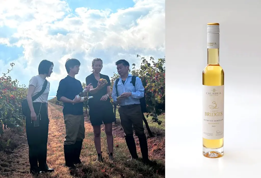 ワインはオーストラリアのカラブリア・ファミリー・ワインズが手がける貴腐ワイン(スリーブリッジズ)。同社は3世代にわたり、量よりも質を重視したワイン造りを続け、温暖な気候と朝霧が特徴のニューサウスウェールズ州リヴァリーナ地区でブドウを栽培しています。