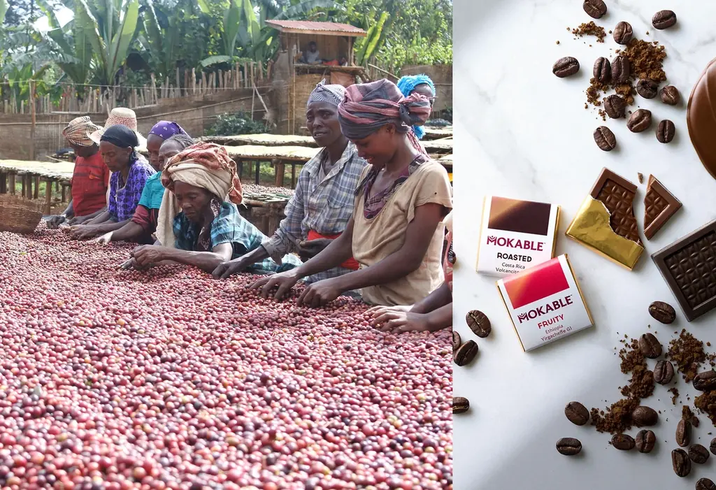 モカブルの製法は、飲むコーヒーでは抽出しきれない香りや風味を豆の全成分として取り込み、サステナブル植物油脂などを合わせることでチョコレートのような口溶けのガナッシュを生み出します。結果として、フルーティでクリーンなコーヒーの個性が生きたガナッシュになります。