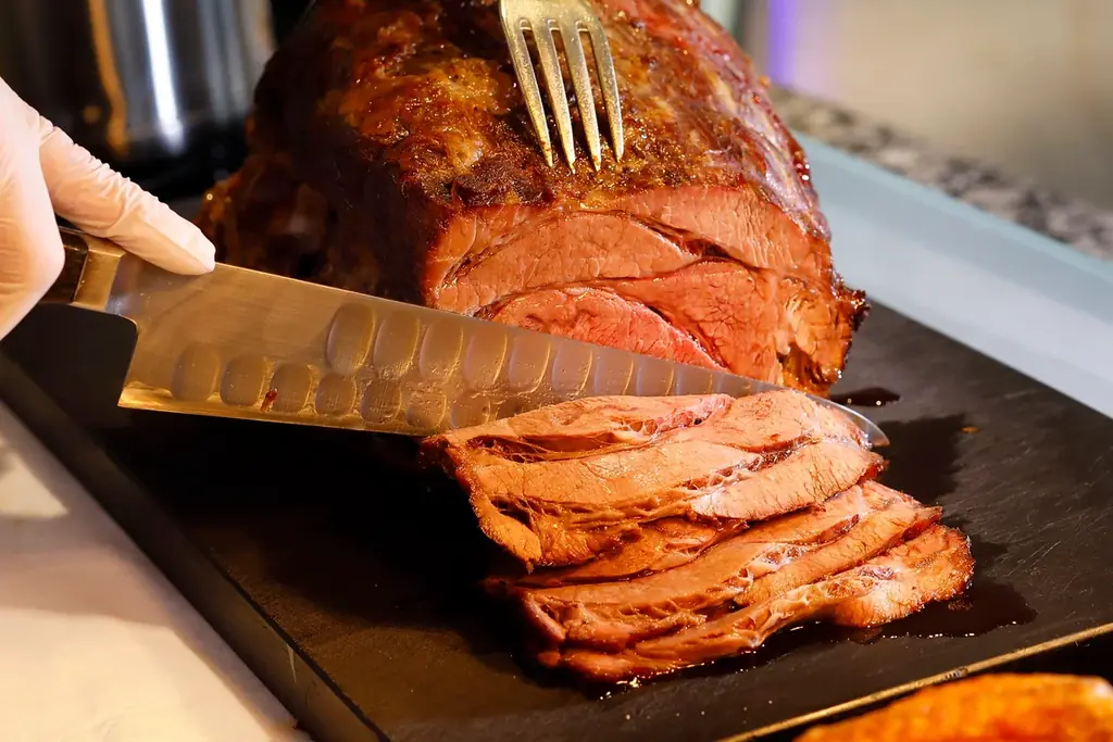 - ジューシーで噛むほどに旨味が広がるローストビーフ。ナイトビュッフェ限定で提供される。
