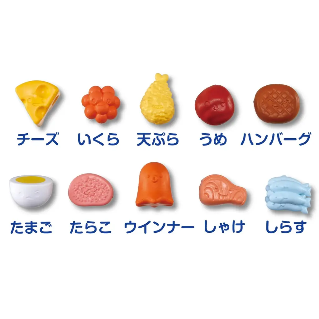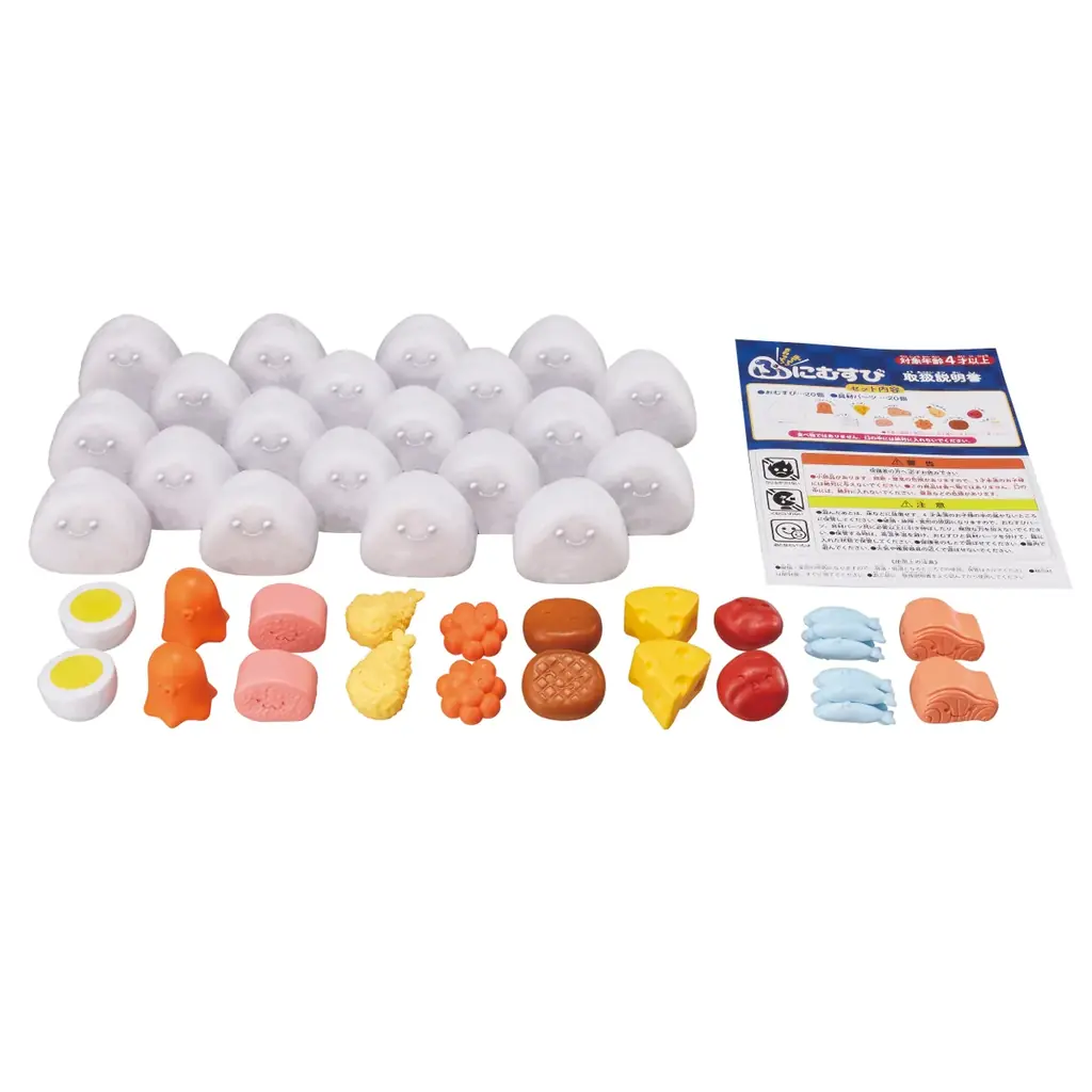 セット内容 おむすび20個、具材パーツ合計20個(チーズ・いくら・天ぷら・うめ・ハンバーグ・たまご・たらこ・ウインナー・しゃけ・しらす 各2個)、取扱説明書1冊