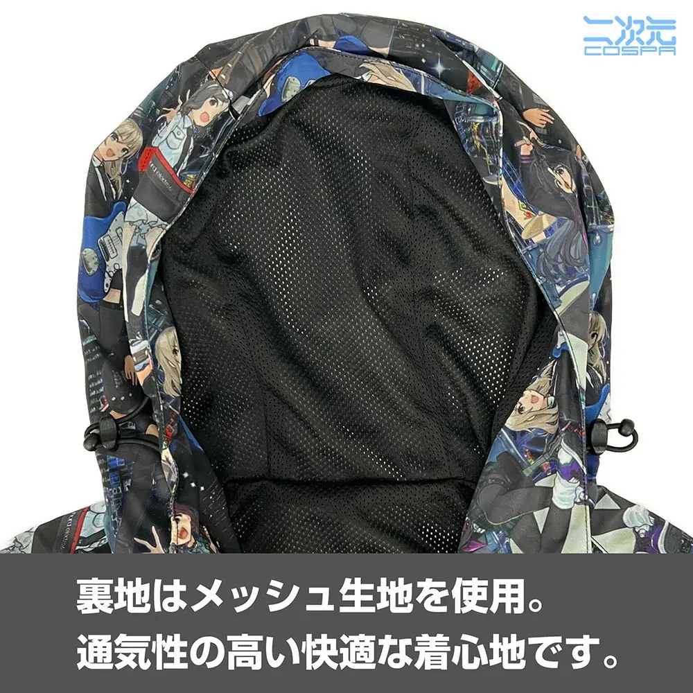 アニメ『ガールズバンドクライ』に登場するユニット「トゲナシトゲアリ」の5人を全身に散りばめた【数量限定】フルグラフィックシェルジャケットが、二次元コスパ(COSPA)よりリリースされます。本商品は各メンバーのビジュアルをジャケット全面にプリントしたデザインで、キャラクターアパレルとしての訴求力を高く保ちながら、日常使いもしやすい作りになっています。