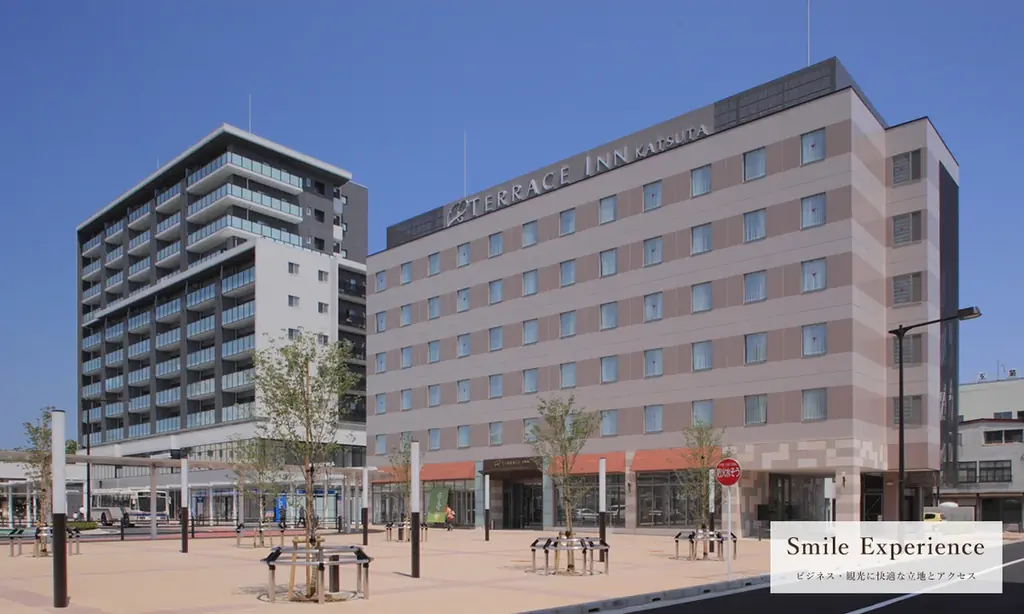 テラスイン勝田は茨城県ひたちなか市、JR常磐線勝田駅東口ロータリー横の好立地にあります。駅近のため雨天時に傘を必要としない利便性があり、国営ひたち海浜公園やアクアワールド大洗へのアクセスが良好です。水戸駅へは電車で1駅という立地により、観光・ビジネスのどちらにも適した宿泊需要が見込まれます。