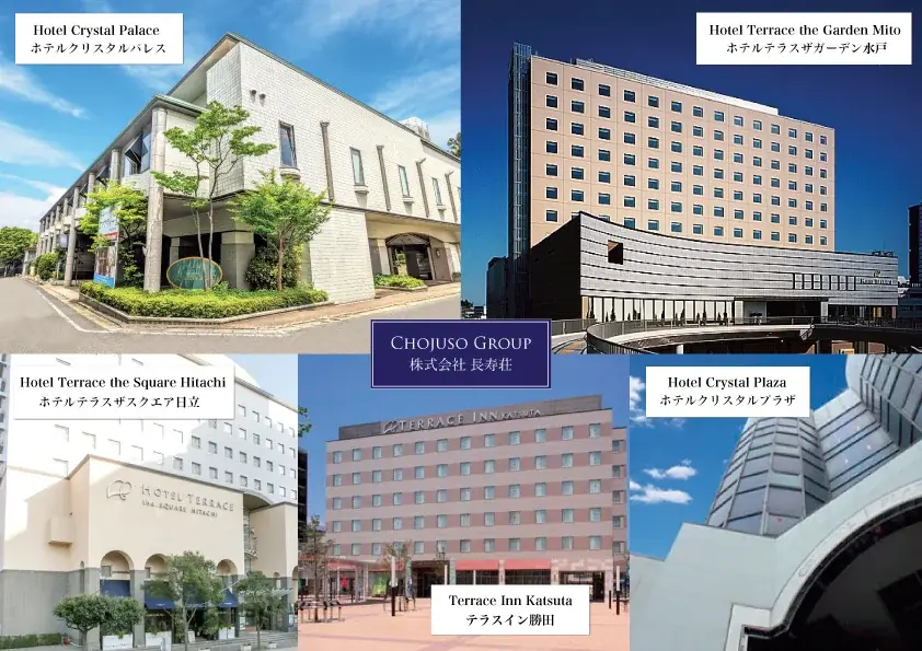 株式会社長寿荘(CHOJUSO GROUP)は創業70年以上の歴史を持つ企業で、茨城県内に5つのホテルを展開しています。代表取締役は海野泰司で、グループミッションは「SMILE EXEPERIENCE-関わるすべての人を笑顔に-」と掲げられています。グループのファクトシートは以下のURLで公開されています。