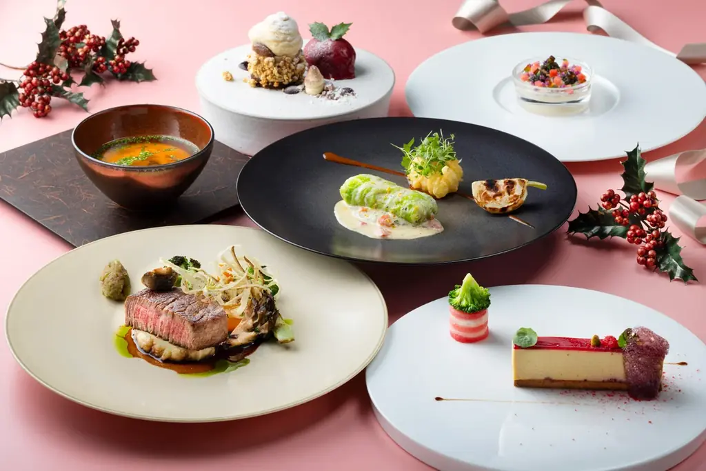 クリスマス期間に館内レストランで味わう多彩なコースと特別メニュー
