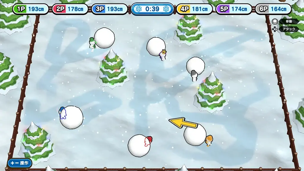本作は雪合戦や氷上バトルといった〈冬の遊び〉をメインにしたタイトルで、操作は簡単に設計されています。最大6人でのローカル対戦に対応し、Joy-Conを用意すれば複数人でのワイワイしたプレイが可能です。同時に、ひとりで練習や腕試しができるモードも用意されています。
