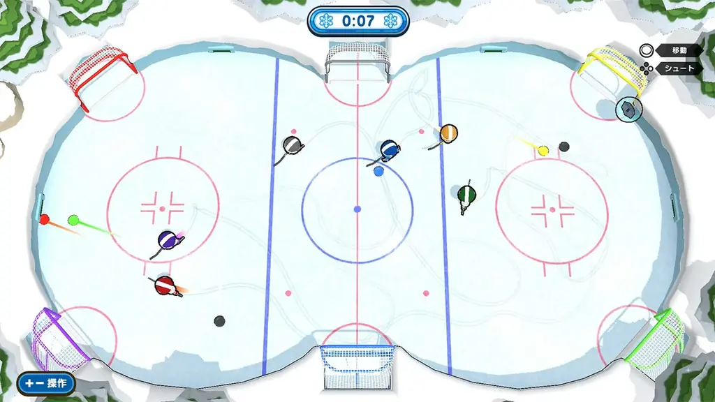 遊べるゲームは雪合戦や氷の上で滑って戦うバトルなど、複数用意されており、好みのルールやステージを選んで試行錯誤できます。操作は直感的で、短時間でルールを把握できます。