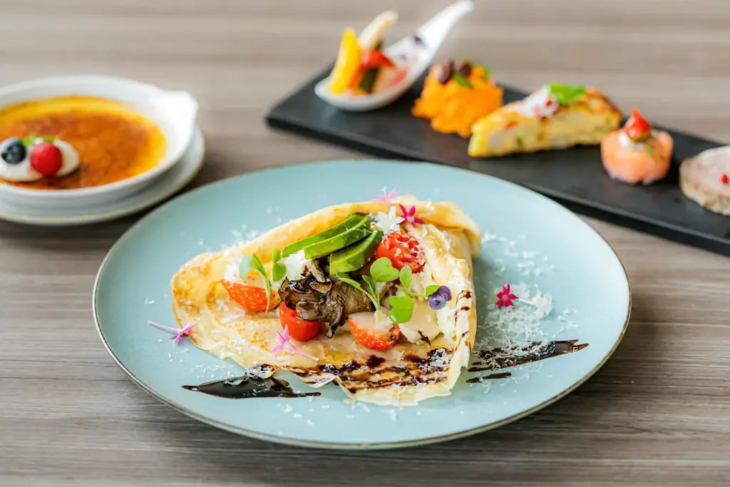 席数は合計110席で、テーブル席84席、グリルカウンター8席、バーカウンター10席、バーラウンジ8席、個室2室を備えます。朝食、ランチ、ディナーそれぞれに時間帯と料金設定があります。
